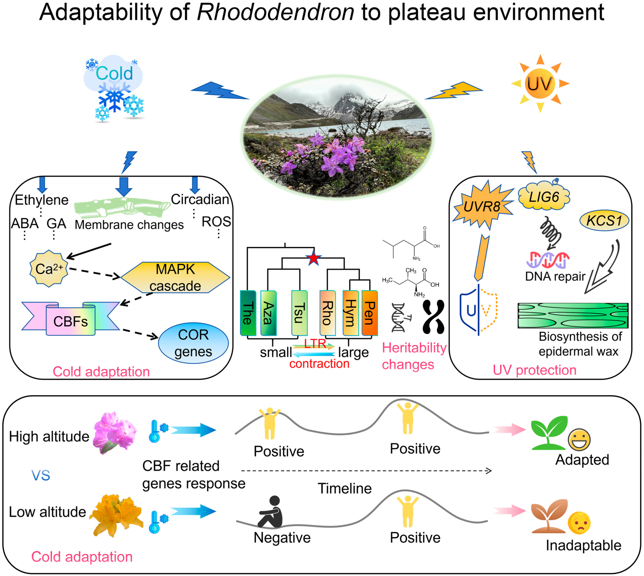 species resist alpine cold stress by rapidly sensing and engaging the chilling response pathway and genes that directly and indirectly protect the plant from UV radiation. Heritable genomic features such as long terminal repeats contribute to the adaptive diversification of